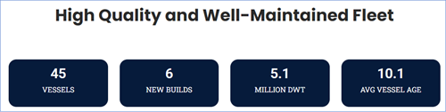截至目前,Safe Bulkers控制45艘散貨船,包括8艘巴拿馬型船,12艘卡爾薩姆型船,17艘超巴拿馬型船,8艘海岬型散貨船,總計460萬載重噸,平均船齡10.3年。此外Safe Bulkers手持6艘干散貨新造船訂單,其中2艘為甲醇雙燃料船,2026年交付4艘,2027年一季度交付2艘。