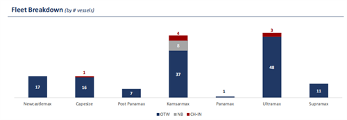 與Eagle Bulk合并后,Star Bulk是美國最大的上市干散貨航運公司之一,控制和運營145艘干散貨船,此外還持有8艘Kamsarmax,包括34艘紐卡斯爾型散貨船/海岬型船、57艘巴拿馬/Kamsarmax、62艘極靈便型船/超靈便型船。