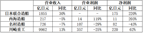 表1. 日本主要造船企業(yè)2025財(cái)年上半年(2025.4-9)財(cái)務(wù)情況 注:川崎重工財(cái)務(wù)數(shù)據(jù)包括非船業(yè)務(wù)。