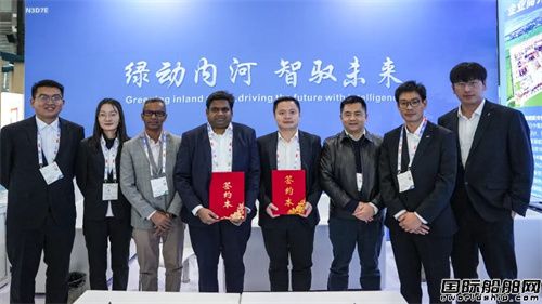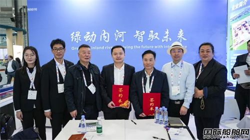 展會現場,新能船業先后與廣西某船務公司簽署30艘甲醇動力集裝箱運輸船意向訂單,與德國斯特拉海事有限公司(Stella Maritime GmbH)簽署2艘120TEU、2艘250TEU純電動力集裝箱運輸船意向訂單,充分印證了公司綠色智能船舶產品的廣闊市場前景與強勁競爭力。