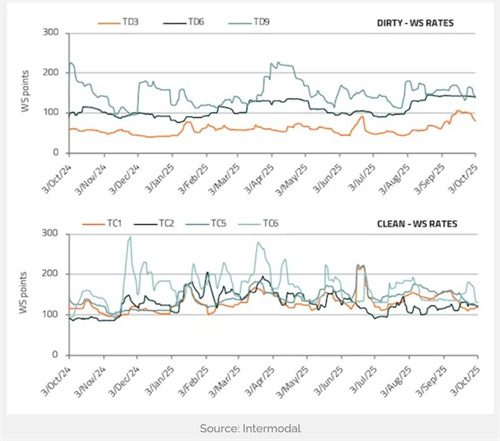 原油方面,日漸成熟的巴西至中國原油航線與中東至亞洲航線共同構(gòu)成了超大型油輪(VLCC)的主要運輸通道,為船東和租船人提供了在中東海運價格波動、俄羅斯航線調(diào)整或政策不穩(wěn)定導(dǎo)致相對經(jīng)濟性變化時的對沖策略。