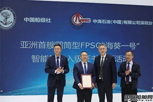 “海葵一號”獲頒CCS智能符號入級證書
