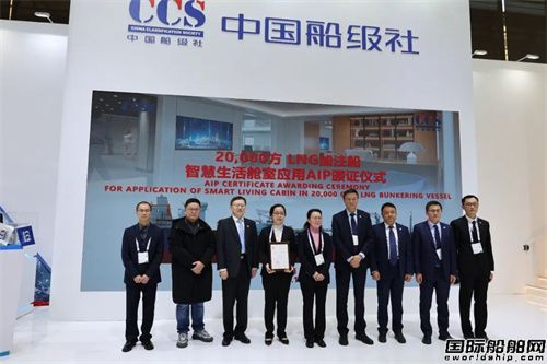20000立方米LNG加注船獲頒智慧生活艙室應用AIP證書