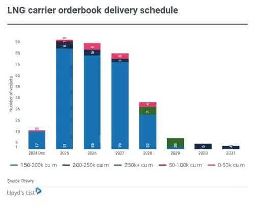 過去一年,大量新造LNG船交付,導致市場運力嚴重過剩,船東之間的競爭加劇,進一步壓低租金水平。市場低迷已使運費接近“理論負值”。租賃TFDE船舶已意味著虧損,因為租金甚至無法覆蓋基本運營成本。