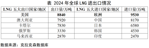 自俄烏沖突以來,美國憑借地理優勢和產能擴張,迅速成為歐洲最大液化天然氣(LNG)供應國。2024年全球LNG進出口情況顯示,美國以8840萬噸出口量居首,其中超70%輸往歐洲。然而,隨著美歐關稅摩擦升級及歐洲能源戰略調整,LNG貿易格局正面臨結構性轉變。