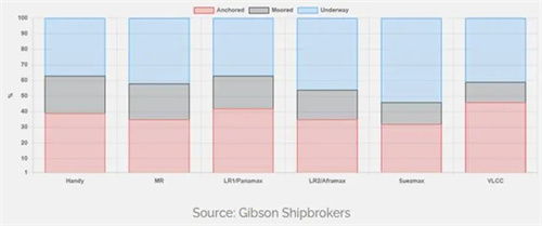 Gibson指出,船齡與運(yùn)營效率呈現(xiàn)明顯負(fù)相關(guān)。以超大型油輪(VLCC)為例,20年以上船齡的船舶錨泊時(shí)間較新船平均增加32%,20年以上船齡的中型油輪(MR)壓載時(shí)間增幅達(dá)22%。可以預(yù)料,受制裁船舶的運(yùn)營活躍度更低:20年以上船齡受制裁影響的VLCC錨泊時(shí)間占比達(dá)67%,較同船齡非受制裁船舶高出8%;前者貨物裝載時(shí)間占比達(dá)38%,較同齡非受制裁船舶低1%。