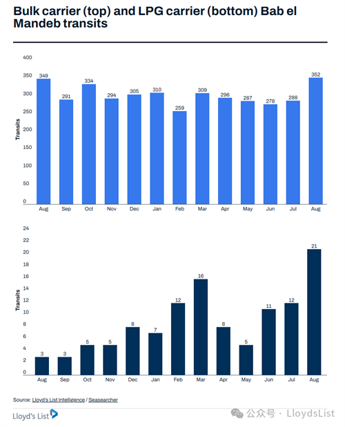 Lloyd’s List Intelligence此前數(shù)據(jù)顯示,中國和希臘相關船舶主導了曼德海峽的過境。