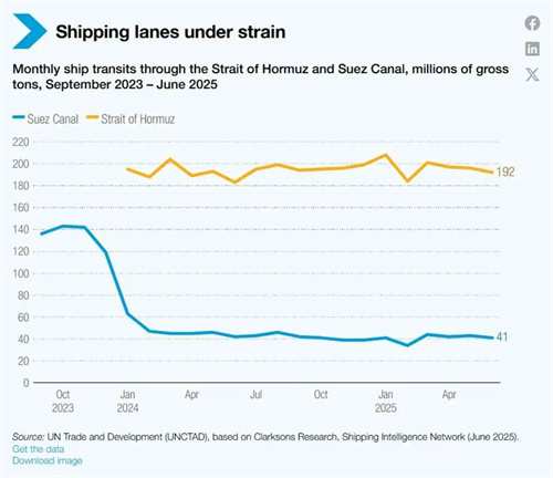 運費波動性正顯著增強。例如,2024年紅海危機引發的供應鏈中斷,當即推高了運費;而2025年持續的地緣政治緊張,則引發市場對霍爾木茲海峽航運可能遭受溢出效應的擔憂。