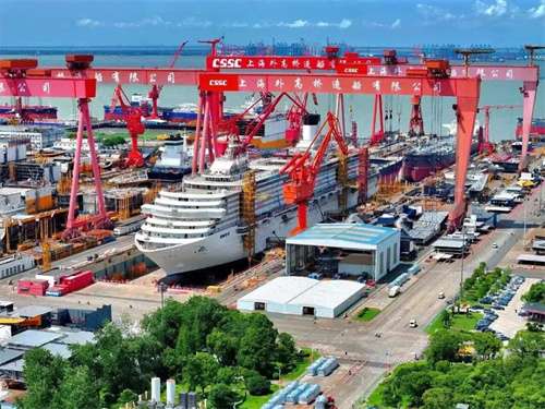 中國郵輪建造能力實現歷史性跨越,第二艘國產大型郵輪“愛達·花城號”于2025年1月完成全船貫通,建造周期較首制船縮短,國產化率提升至近40%。該船總噸位達14.19萬噸,優化了中庭布局和水上樂園設計,可搭載5232名乘客。中國船舶集團有限公司旗下上海外高橋造船有限公司通過數字化孿生技術,使設計改單量下降80%,質量檢驗一次通過率達98.86%。本土船供配套率從首制船的30%提升至40%;數字化平臺集成采購、物流、支付功能,使物資補給時間縮短至48小時;關鍵領域取得突破,艙室模塊化系統實現國產化,食品供應通過國際認證,但高附加值設備如發動機仍依賴進口。報告預測,到2030年,中國郵輪供應鏈規模將突破5000億元。