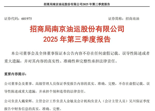 10月28日,招商局南京油運股份有限公司發布2025年第三季度報告。