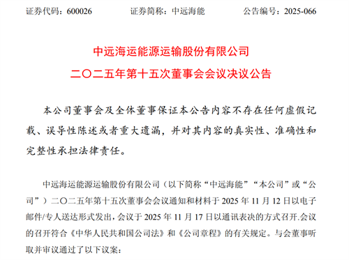 11月17日,中遠海運能源運輸股份有限公司發布《二O二五年第十五次董事會會議決議公告》,審議并通過多項人事任命議案。