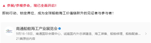 2025南通船舶海工產業展以“綠色化、智能化、國際化、高端化、品牌化”為核心,聚焦全球船海產業技術變革與供應鏈重構,覆蓋船舶設計建造、海工裝備、配套設備、智能技術、綠色解決方案、金融服務等全鏈條,預計展出面積近3萬平方米,將吸引來自全世界各地的知名船東、船廠、設計院所、設備供應商、科研機構等領域專業人士齊聚,打造一站式產業交流與采購平臺。